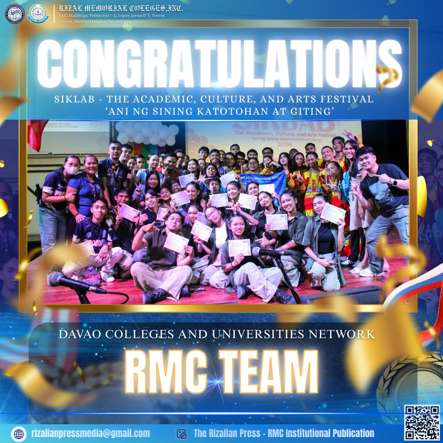 Join a community where excellence, integrity, and patriotism unite to shape tomorrow’s leaders. At Rizal Memorial Colleges (RMC), we cultivate a spirit of service and inspire a lifelong commitment to learning, nation-building, and global citizenship. Becoming a Rizalian means becoming part of a legacy that values education as the foundation of progress and purpose.