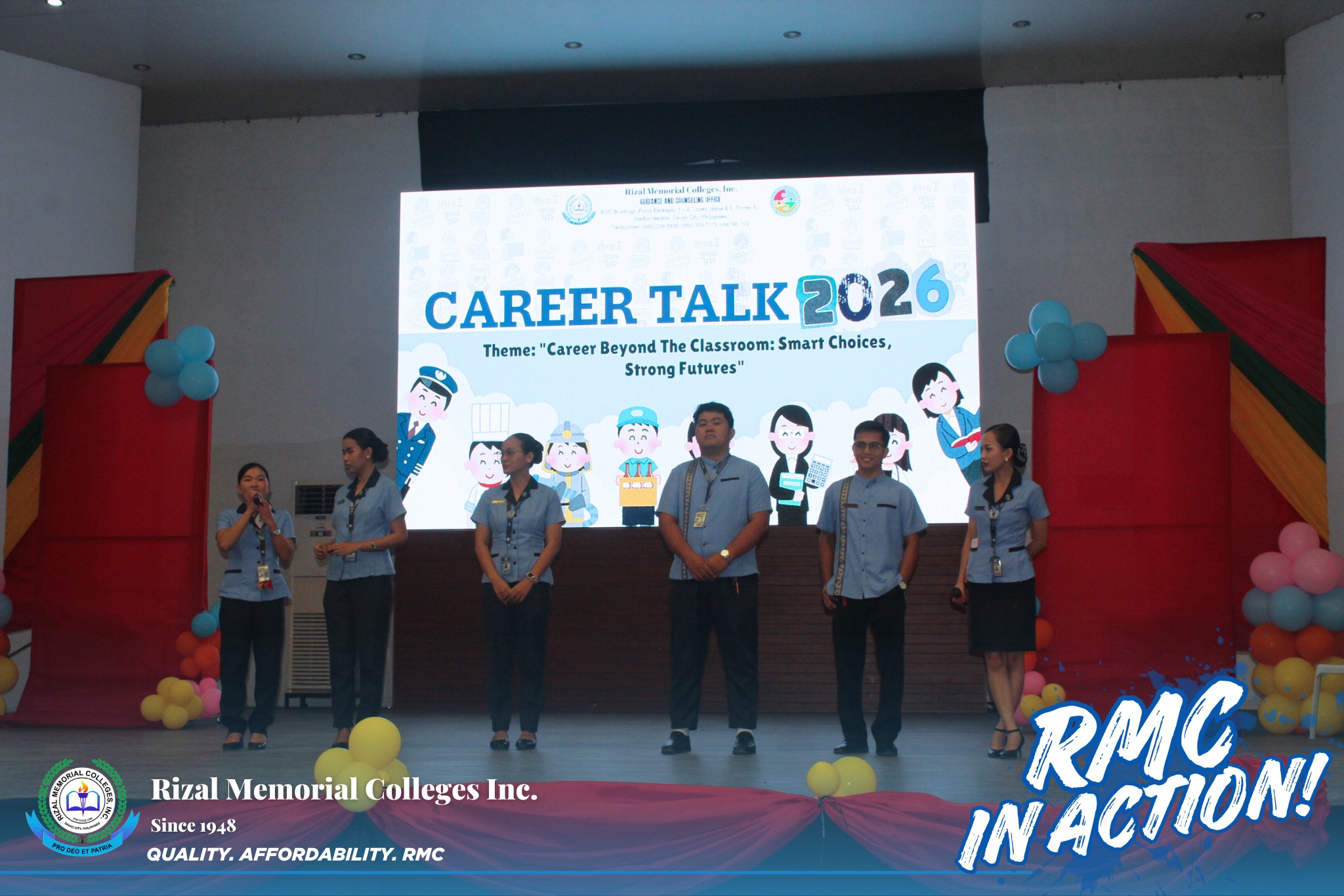 Rizal Memorial Colleges, Inc., in the initiative of the Guidance & Counseling Department and the Admissions Office, successfully conducted the Career Guidance Event on February 27, 2026 at the RMC Arena for all IBED students. The Deans of each college actively participated in presenting their industry-responsive and future-ready academic programs to our Grade 12 learners.