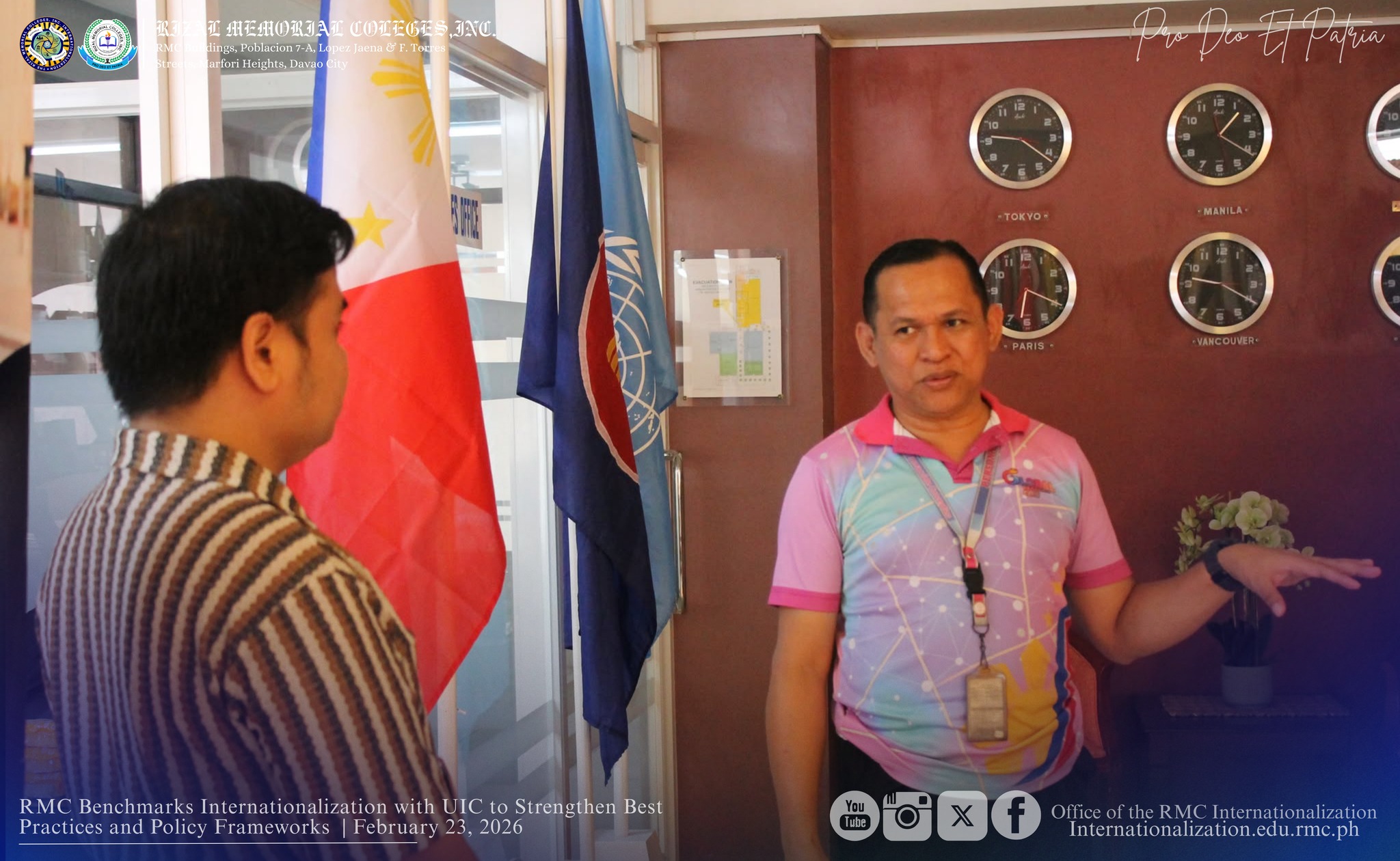 ๐๐ซ๐จ๐. ๐๐ง๐ญ๐จ๐ง๐ข๐จ ๐. ๐๐จ๐ฅ๐จ๐ฆ๐จ๐ง ๐๐ซ., ๐ซ๐๐ฉ๐ซ๐๐ฌ๐๐ง๐ญ๐ข๐ง๐ ๐ญ๐ก๐ ๐๐๐ ๐๐ง๐ญ๐๐ซ๐ง๐๐ญ๐ข๐จ๐ง๐๐ฅ ๐๐๐ฅ๐๐ญ๐ข๐จ๐ง๐ฌ ๐๐๐๐ข๐๐ (๐๐๐), led the benchmarking activity as part of the institutionโs strategic initiative to strengthen its internationalization framework. The engagement centered on gaining deeper insights into UICโs established systems in External Relations and Internationalization, ๐ฎ๐ง๐๐๐ซ ๐ญ๐ก๐ ๐ฅ๐๐๐๐๐ซ๐ฌ๐ก๐ข๐ฉ ๐จ๐ ๐๐ฌ๐ฌ๐ญ. ๐๐ซ๐จ๐. ๐๐๐ง๐ ๐. ๐๐๐๐ข๐๐ซ๐ ๐๐. The ๐๐ข๐ฌ๐๐ฎ๐ฌ๐ฌ๐ข๐จ๐ง ๐๐ข๐ฆ๐๐ ๐ญ๐จ ๐ข๐๐๐ง๐ญ๐ข๐๐ฒ ๐๐๐๐ฉ๐ญ๐๐๐ฅ๐ ๐ฆ๐จ๐๐๐ฅ๐ฌ, ๐๐๐ฌ๐ญ ๐ฉ๐ซ๐๐๐ญ๐ข๐๐๐ฌ, ๐๐ง๐ ๐ฌ๐ญ๐ซ๐๐ญ๐๐ ๐ข๐ ๐๐ฉ๐ฉ๐ซ๐จ๐๐๐ก๐๐ฌ ๐ญ๐ก๐๐ญ ๐๐๐ง ๐๐ ๐๐จ๐ง๐ญ๐๐ฑ๐ญ๐ฎ๐๐ฅ๐ข๐ณ๐๐ to further enhance RMCโs internationalization efforts.