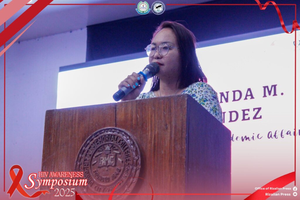 Rizal Memorial Colleges, Inc. (RMC) hosted a crucial HIV/AIDS Symposium on November 11, 2025, from 1:00 PM to 5:00 PM at the RMC Gym Arena, operating under the theme: “𝐘𝐨𝐮𝐫 𝐒𝐭𝐚𝐭𝐮𝐬, 𝐘𝐨𝐮𝐫 𝐒𝐭𝐫𝐞𝐧𝐠𝐭𝐡: 𝐆𝐞𝐭 𝐓𝐞𝐬𝐭𝐞𝐝, 𝐆𝐞𝐭 𝐄𝐝𝐮𝐜𝐚𝐭𝐞𝐝.” The event underscored RMC’s commitment to public health by offering FREE HIV Testing & Counseling. The program, which began with official opening ceremonies and a message from 𝐃𝐫. 𝐀𝐥𝐦𝐢𝐧𝐝𝐚 𝐌. 𝐅𝐞𝐫𝐧𝐚𝐧𝐝𝐞𝐳, 𝐕𝐢𝐜𝐞 𝐏𝐫𝐞𝐬𝐢𝐝𝐞𝐧𝐭 𝐟𝐨𝐫 𝐀𝐜𝐚𝐝𝐞𝐦𝐢𝐜 𝐀𝐟𝐟𝐚𝐢𝐫𝐬, followed by an inspirational address from 𝐒𝐜𝐡𝐨𝐨𝐥 𝐏𝐡𝐲𝐬𝐢𝐜𝐢𝐚𝐧 𝐃𝐫. 𝐌𝐢𝐜𝐡𝐚𝐞𝐥 𝐍. 𝐉𝐚𝐦𝐢𝐚𝐧𝐚, was skillfully guided by Masters of Ceremony 𝐌𝐬. 𝐉𝐚𝐧𝐢𝐧𝐞 𝐇. 𝐒𝐮𝐚𝐫𝐞𝐳 𝐚𝐧𝐝 𝐌𝐬. 𝐃𝐚𝐢𝐥𝐲𝐧𝐞 𝐄. 𝐀𝐛𝐞𝐥𝐥𝐚𝐧𝐨𝐳𝐚, 𝐏𝐞𝐞𝐫 𝐅𝐚𝐜𝐢𝐥𝐢𝐭𝐚𝐭𝐨𝐫/𝐂𝐓𝐄 𝐒𝐭𝐮𝐝𝐞𝐧𝐭𝐬.